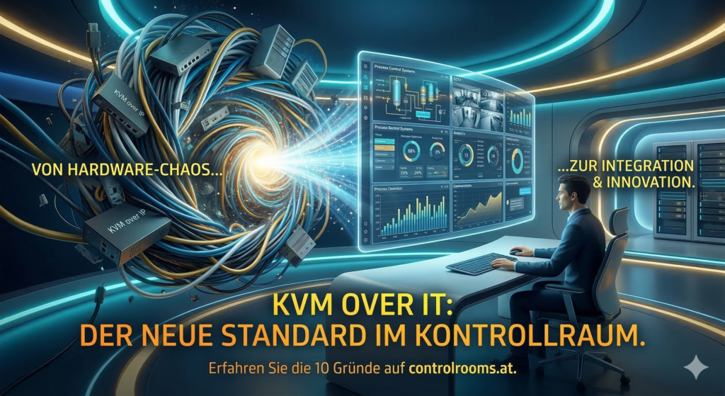 Wir von der controlrooms GmbH wissen: Die Verschmelzung von AV und IT ist kein Trend, sie ist Realität. KVM over IT ist die Antwort auf die Komplexität moderner Leitwarten. Es macht die Technik schlanker und den Menschen effizienter.